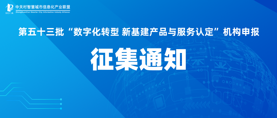征集通知 | 第五十三批“数字化转型 新基建产品与服务认定”机构申报